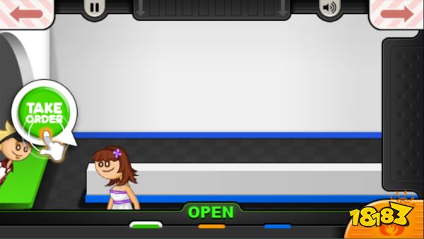 1、首先进入老爹汉堡店2026最新版游戏,第一天开业见到客人就接单