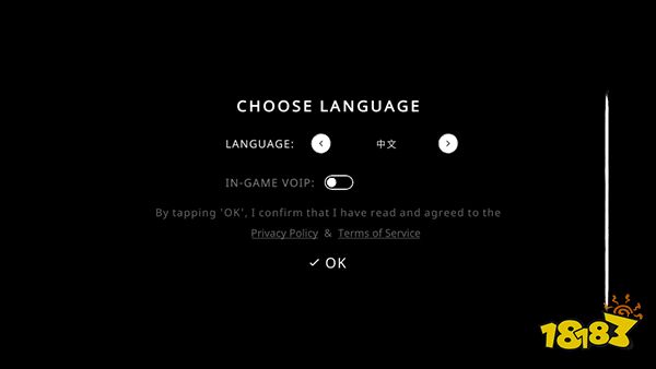 1、首次进入游戏时,会显示语言选择界面,选择中文即可