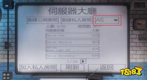 3、好友在知道邀请码后在伺服器大厅输入邀请码就可以进入房间,所有人都准备好了后就可以开始游戏了。