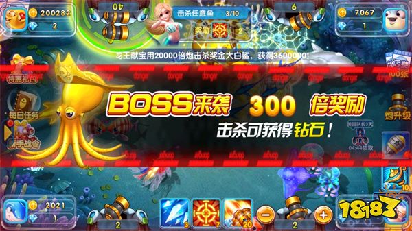 2、通过不断地捕鱼获得钻石升级自己的炮弹,高级的炮可以解锁新场地。