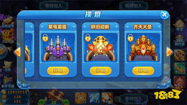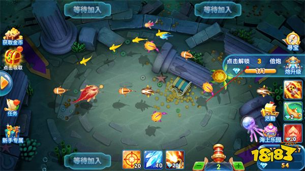 2、在捕鱼的过程中,玩家可以通过升级解锁高级炮台来提升炮台伤害,快速捕捉鱼类。
