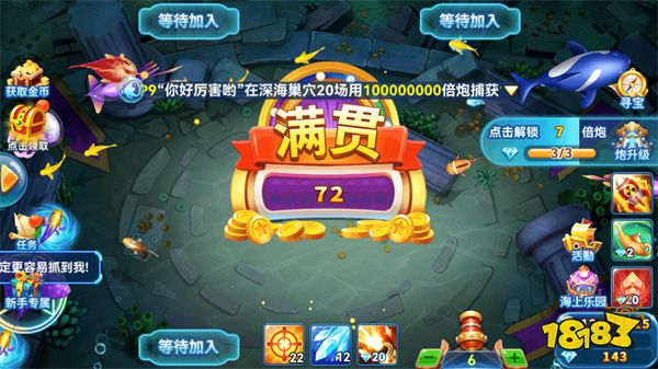 5、玩家在捕鱼进程达到一定数量后就可以解锁新的倍数,获得更多金币钻石。
