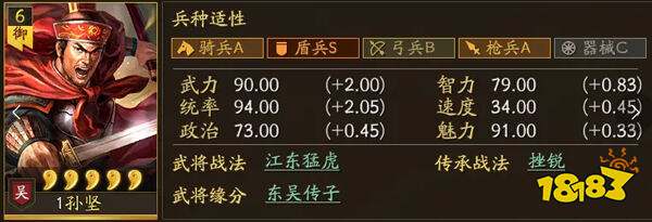4、推荐开局武将:孙坚,基础属性高且成长优越