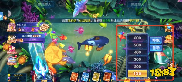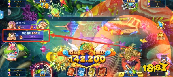 1、想要打到大鱼我们需要从各个方面入手,首先在捕鱼界面我们需要升级炮台,解锁炮倍,炮倍越高,捕获大鱼的几率就越大!