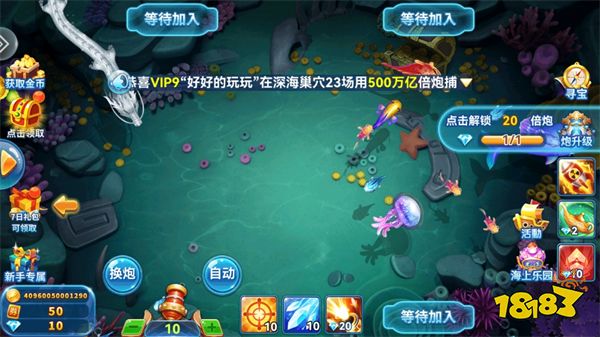 3、进入渔场后,玩家需点击屏幕来控制炮台发射捕鱼或者开启自动模式。