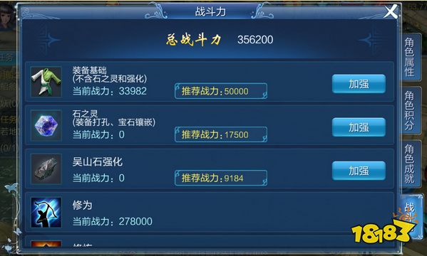 图4:战斗力面板-可查看战斗力分析与提升建议