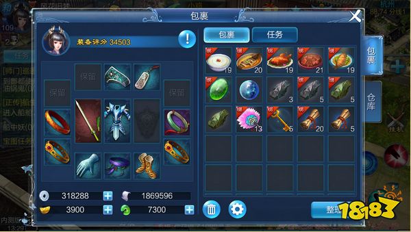 所有游戏内获得的道具和装备,均会显示在包裹中。