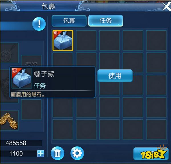包裹分为普通包裹和任务包裹,任务包裹仅用于存放任务类道具。