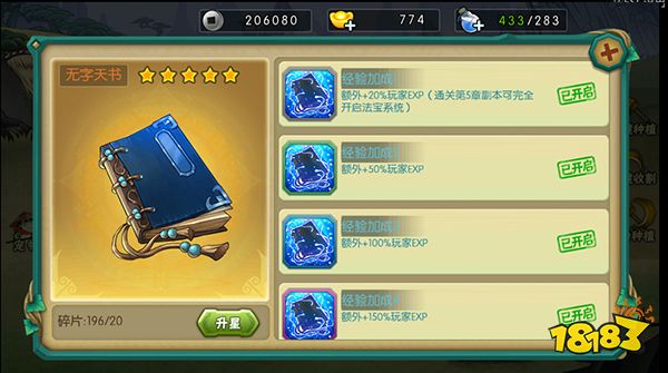 无字天书可以增加玩家额外经验值