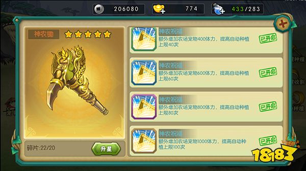 神农锄可以增加农场宠物体力和提高种植上线
