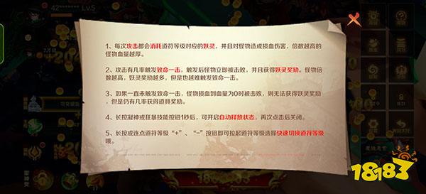 1、每次攻击都会消耗道符等级对应的妖灵,并且对怪物造成损血伤害,倍数越高的怪物血量越厚。