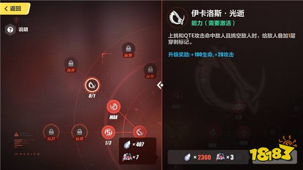 相对于其他两名角色,卡萝尔较为特殊,在解锁角色的时候就已经拥有了部分前期技能,不需要再花费材料从0点起,所以以下是针对卡萝尔输出的加点推荐。