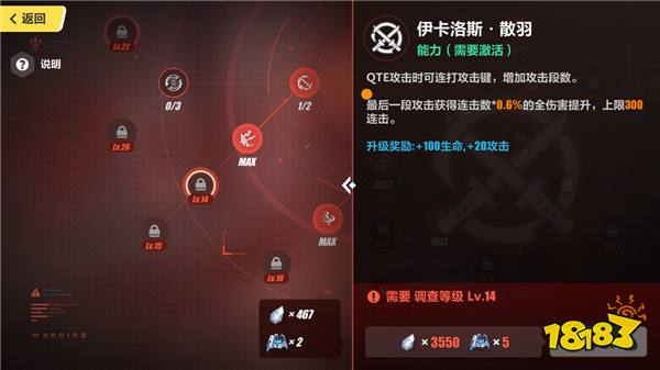 总结:卡萝尔角色输出非常的高,但是蓄力技能较难以命中敌人,需要队友打出异常状态的配合才能保证命中造成大量伤害,连携技能有些生硬还会把敌人击退一段距离,实战表现也不算很好,在点完上面这些技能后还有材料可以考虑。