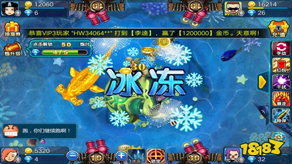 冰冻技能在游戏中的确有非常大的作用,尤其是在大型鱼类即将捕获而此鱼又刚好要逃跑的时候,如果想留住并捕获,那么就必须用到冰冻技能。如果大型鱼类跑了,就白白损耗大量金币去购买炮弹了。