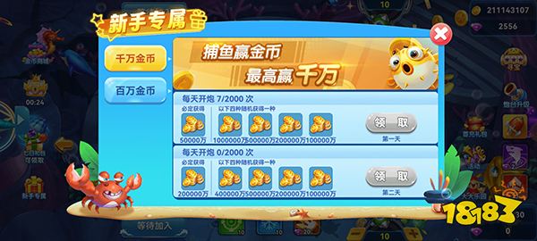 3、玩家开炮捕鱼还能领取新手专属礼包,赢取千万金币。