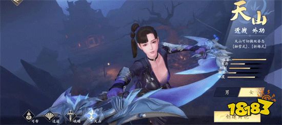 具备冰属性。此门派与丐帮同样擅长攻击,但是前者刺客的属性,注定其具备着高爆发的特征。金蝉脱壳的隐身技、兰花点穴手等单控、单伤技能,都让天山派具备着高额的爆发。对于喜欢单挑的玩家来说,天山是首选。
