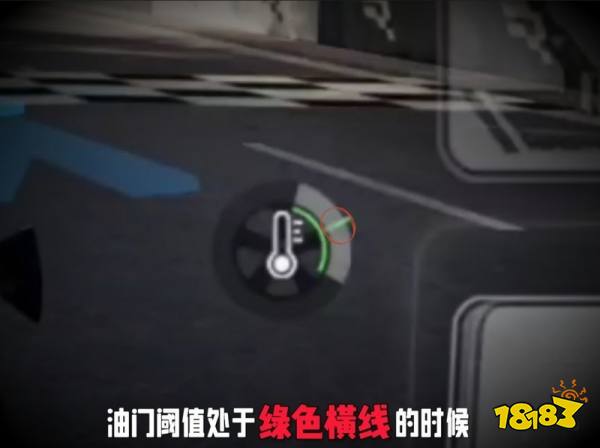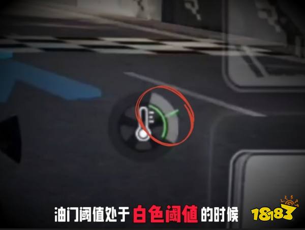 起步倒计时未结束前,刹车上方会出现油门阈值圈,轻点油门时指针会在白色阈值范围内摆动,倒计时结束时若指针位于该范围内即可触发。