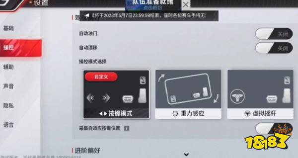 巅峰极速提供了三种常规操作方式:按键模式、重力模式和虚拟摇杆模式,各具特色,玩家可根据个人喜好自由选择。