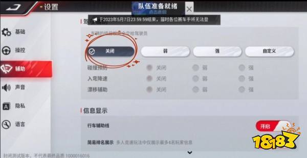 开启漂移导航线和弯道提示标志,有助于新手更好地掌握入弯时机,尤其适合对外内外过弯路线不熟悉的新玩家。