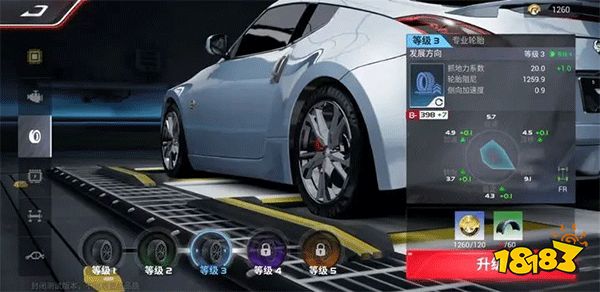 好的轮胎不仅可以提升赛车的抓地力系数,还能提升侧向加速度。370Z的等级1轮胎提升到等级5,可以将抓地力系数提高4.0,侧向加速度提升0.1,这既可以提升车辆的加速和刹车性能,还能减少车辆漂移时的侧滑。