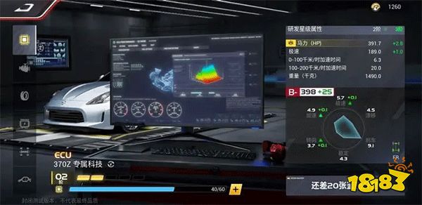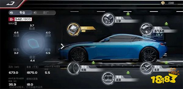 「ECU」是赛车性能改装最为重要的一部分,它可以全面提升车辆的性能。满级共五阶,其中一阶升二阶所需30个蓝图材料,升级后马力从366.0提升到368.9;极速从180.0提升到181.0;0-100千米/时加速时间从6.8降低到6.7。