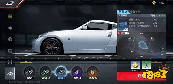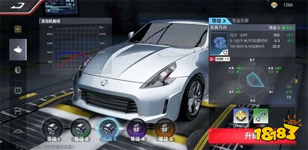 当赛车引擎升级至等级3时,除了需要金币以外还需要零件。零件的获取途径主要有四种方式,分别是:车展商店、段位提升、主线任务以及赛季合约。以370Z为例,将引擎从等级1升级到等级2:马力会从369提升至380,0-100千米/时加速时间会从6.5降低至6.4。