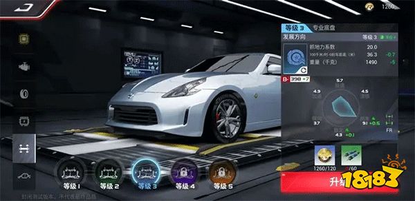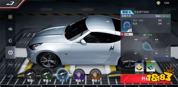 在《巅峰极速》中,「电气系统」对赛车最主要的影响则是极速。同样以370Z为例:电气系统从等级1升级到等级2,极速会从181提升至185,最高等级5升级完毕后,极速会提升至197。