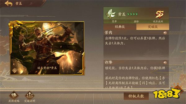 武将普通招募随机获得武将黄盖,然后完成突破任务得到加强版——界黄盖。