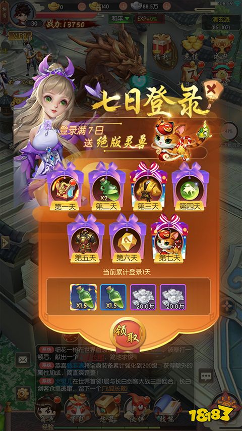 2、开服活动,七日登录领取绝版灵兽。