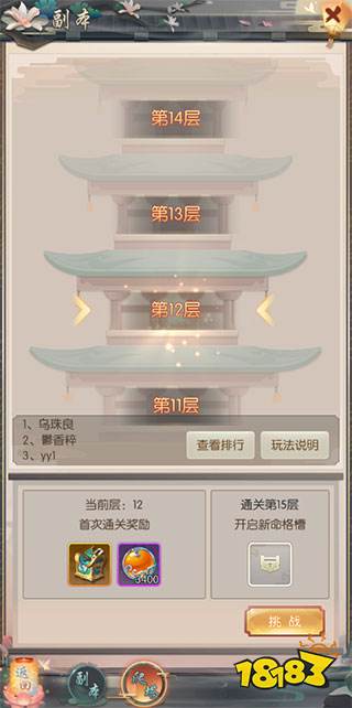 3、每天0点系统将根据通关的层数发放层数奖励,层数越高奖励越丰厚。