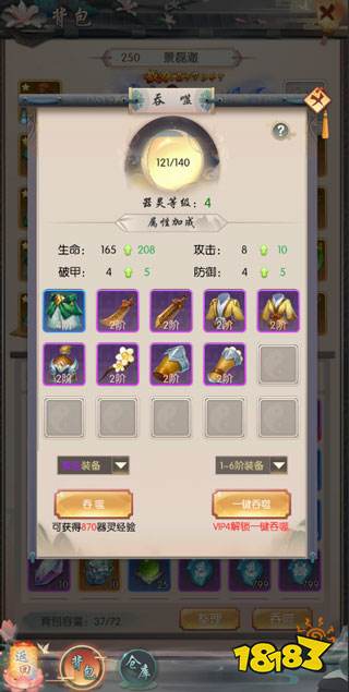 介绍游戏中的不使用的装备可进行吞噬,从而提升器灵等级,获得更多的额外属性。