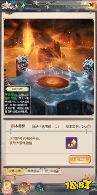 3、每天可进入2次,由于是特殊场所,故每次进入需消耗试炼玉佩。