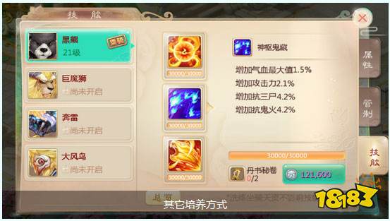 4)玩家也可通过使用“丹书秘卷”和少量师贡来提高坐骑技能熟练度。(丹书秘卷可通过南斗星象 、高级藏宝图、 摆摊交易获得)