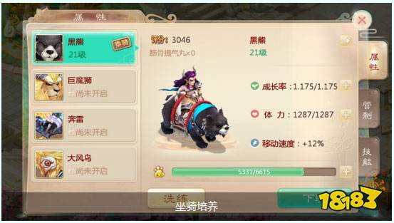 4)坐骑洗练时,坐骑的成长率最高可达到1.175。