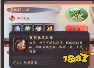 1.家族商店是获取到升阶材料的好地方,每天家族商店都会刷新一批升阶材料,供东家们兑换,而兑换升阶材料需要消耗一定数量的家族贡献。