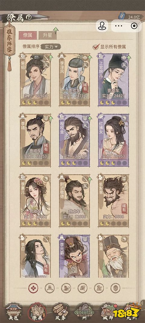 -武选司首先你培养5个主力僚属,等级高的角色方向去。剩下的角色为“弃用英雄”