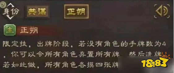 当无角色手牌数为4时可发动,全场弃牌并补牌。劣势局可破敌方手牌优势,为己方创造生机,类似神吕布掀桌效果。