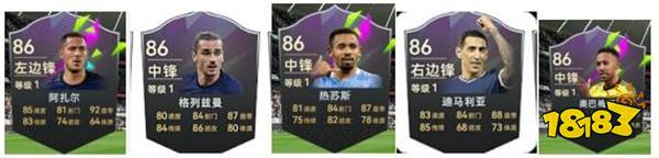 那前锋的话,射门这项都普遍较高,如果你想要数值都比较均衡的话,可以选阿扎尔、迪玛利亚;如果想打双中锋,可以选奥巴梅杨(美羊羊)、格子、热苏斯搭配签到7天送的伊布;想打三前锋阵型可以基耶萨+阿扎尔+前面选的红卡中锋;搭配你的进攻三叉戟组合。