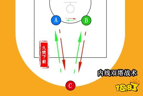 该战术需要队伍中存在两名内线球员,组合需要C位中锋+C位中锋/PF大前锋+SG得分后卫/SF小前锋。内线双塔顾名思义在内线具有极强统治力,说它为战术不如叫它一种队伍组合。这种战术思路极其简单粗暴,通过内线球员的篮板能力,获得二次进攻球权;内线球员的防守干扰能力,阻止对面进攻得分,甚至在盖帽成功后同样能拿到二次球员。外线完全放弃组织进攻能力,用SG/SF的得分能力去取而代之。