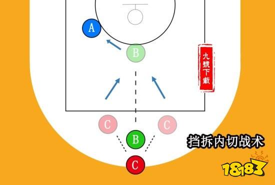 挡拆内切战术同样由顶弧持球人发起,当顶弧持球人拿到球后,一名队友立刻跑来为其挡拆,此时持球人向左侧或右侧突破,带动防守人离开顶弧位置。当防守人跟着持球人跑动后,负责挡拆的队友立刻向篮下切入,接持球人的传球直接上篮。如果途中遭遇对方协防,则将球传递给三号队友,打出其他战术或者直接空位投篮。该战术的队友配合需要默契,并且依赖“跑动”属性(增加所有状态下的移动速度)拉开空位差距。