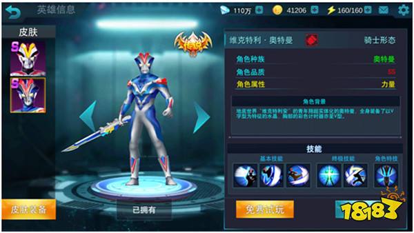 赛罗奥特曼无限形态皮肤:拥有皮肤之后,赛罗奥特曼可以直接从S等级变成SS等级,但是皮肤目前只能通过专属副本获得,所以难度还是有的。
