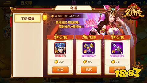 游历玩法中的奇遇事件“半价物资”有几率刷出武将碎片;而奇遇事件“慕名而来”可直接购买完整武将哦。
