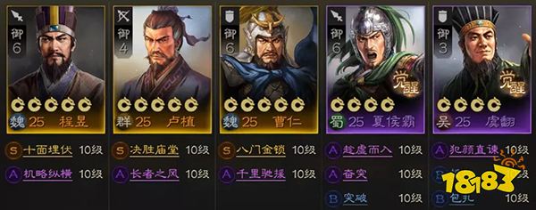 输出核心:核心输出位夏侯霸,程昱二号输出位,卢植三号输出位。
