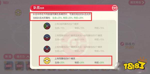 5、新手期之后,精灵的数量会越来越多,这时候搭配阵容就比较方便了,可以考虑根据系别来搭建阵容了,依照不同系别组队会有不同的大幅加成。玩家可以根据自己的意愿选择想要发展的系列,再来对各个位置进行培养,包括输出、辅助等位置单卡的发展。