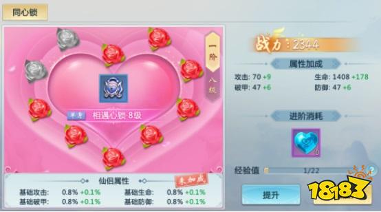 同心锁功能也将跟随仙缘系统同步开启,初始为一阶1星单身同心锁,可使用三生石进阶。同心锁能为上仙们提供大量属性加成,结缘后单身同心锁自动进阶为情缘同心锁,享受额外仙侣属性加成,等阶越高,加成百分比越大。另外,同心锁等级、双方亲密度以及仙娃等级满足要求时还可领取专有仙侣称号。