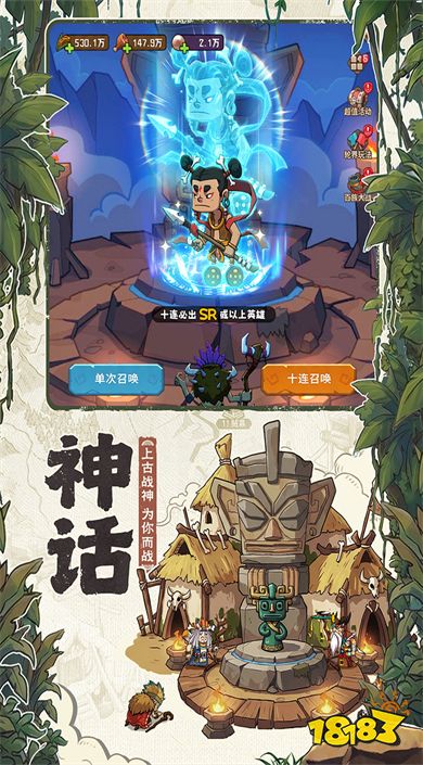 3、手绘原始美学画风,融合原始岩画、图腾纹饰与东方神话元素,角色设计野性十足,场景色彩粗犷大气,搭配激昂的原始风音效,沉浸式感受蛮荒时代的神秘与壮阔。
