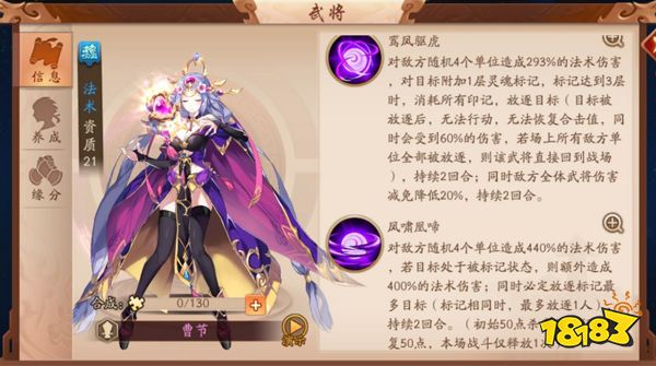 简介:如果给曾经的魏国打八十分,那么此刻的魏国就是99分,还有1分是对他未来的期待。曹操的出现让羸弱的魏国登上台面,以曹老板为核心,控制拉满,伤害也不俗。真的是虎父无犬子,作为女儿的曹节,并不意味着比父亲差,伤害上合成初期就能对被标记的单位造成最高总和840%的法术伤害,控制上直接放逐标记最多的单位,直接牵扯对面,影响合击值的回复,不能行动,却依然可以受到伤害。用普通话解释,就是这姑娘有点“打人不讲理了”,不让你动,你得挨揍,同时你还影响你团队合击的回复。曹节的出现,让魏国的控制链达到完美,同时弥补了输出的不足,配合荀彧与曹操,曹节给予了强大的支持,让敌方在控制中消亡。