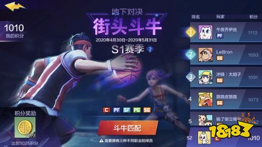 街头斗牛采用的是1V1的匹配对抗赛制,比赛采取三局两胜制,玩家需要配置3名不同位置的球员开赛。每一小回合比赛双方玩家分别有3次进攻机会,比赛采取无篮板制,存在进攻出手、进攻超时和被敌方抢断这三种情况中的一种则交换球权。