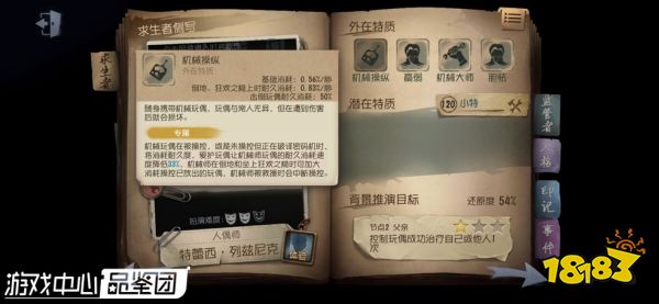 机械师随身携带玩偶遥控器,可以操控玩偶破译密码机,即使在被抓上椅子时也能继续破译。尽管经过削弱,机械师依然是当前版本中最强的修机位,拥有最快的破译速度。