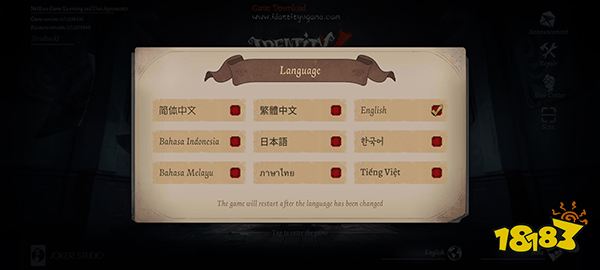 在您首次进入游戏时,系统会提示您下载必要的数据文件。完成下载后,请在界面右下角找到并点击“English”选项,以切换到英文界面。